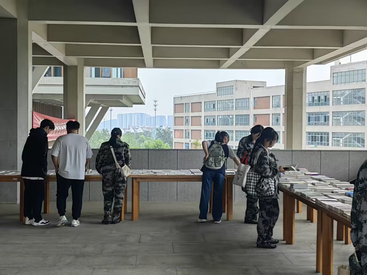 图书展台前,同学们三五成群的纷纷前来翻阅图书、有的细细品读经典图书《庄子》、《孙子兵法》,有的分享交流文学、心理方面的图书,在缕缕墨香中体验阅读的芬芳,经过一番阅读甄选,不时有同学买到自己心仪的图书,回去慢慢品赏鉴读。